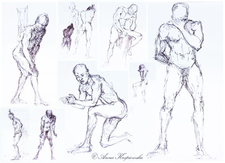 Dessin d'après modèle vivant 2 / Drawing after living model 2 / La plume et l'encre de Chine sur papier blanc