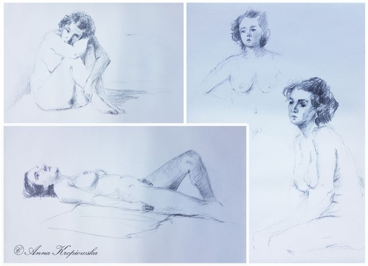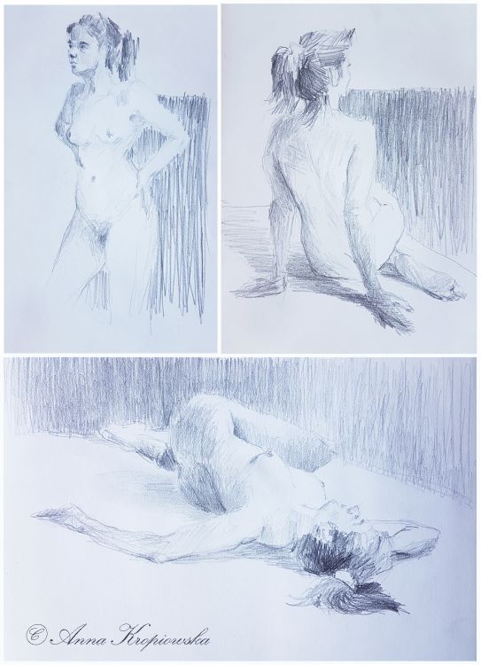 Dessin d'après modèle vivant 1 / Drawing after living model 1 / Crayon sur papier blanc